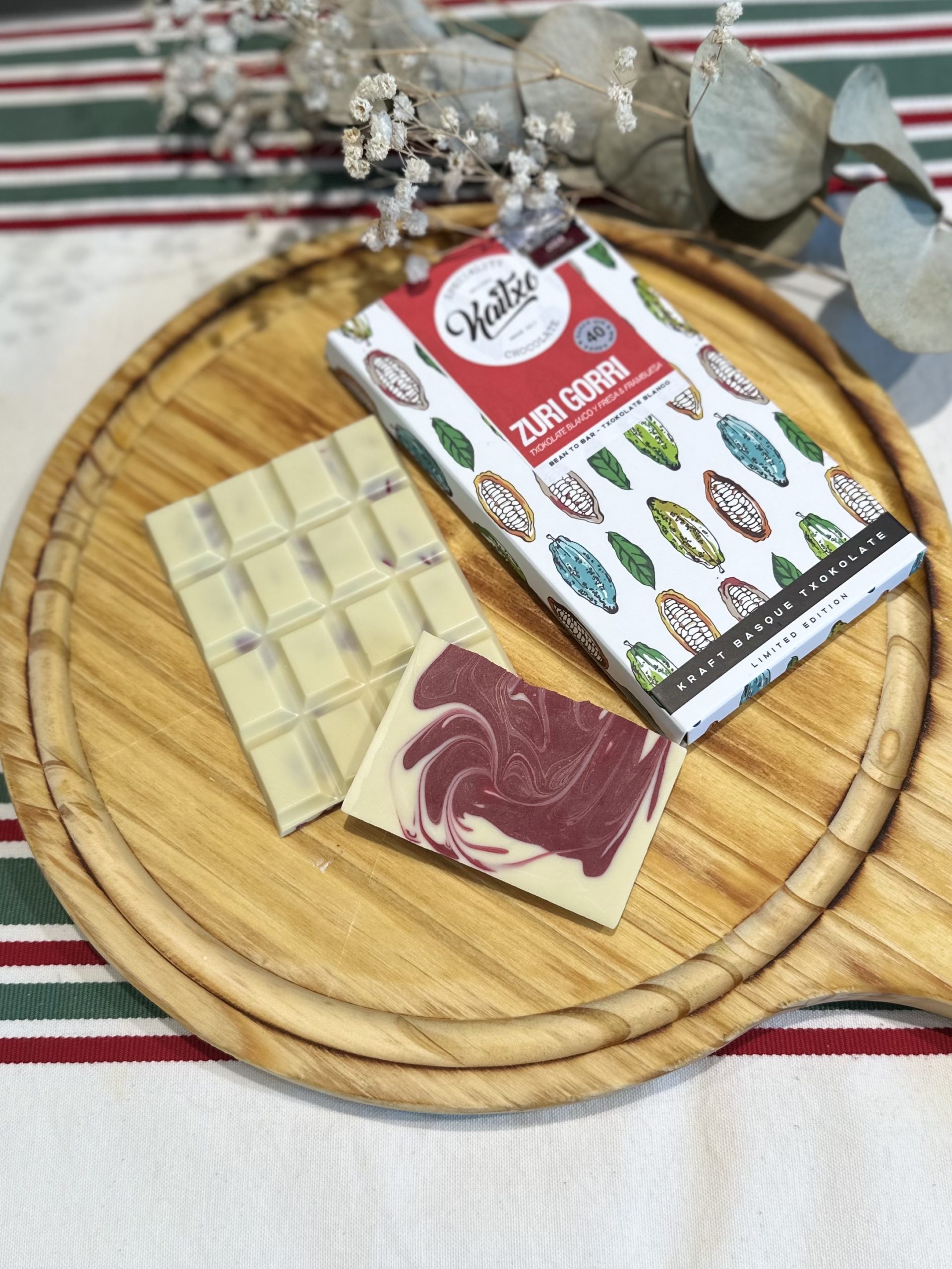Cremosa tableta bicolor, blanca y roja, como su propio nombre indica,  inspirada en el Athletic, que combina la cremosidad del chocolate blanco, con la acidez y frescura de la fresa y la frambuesa. Dos chocolates en uno.